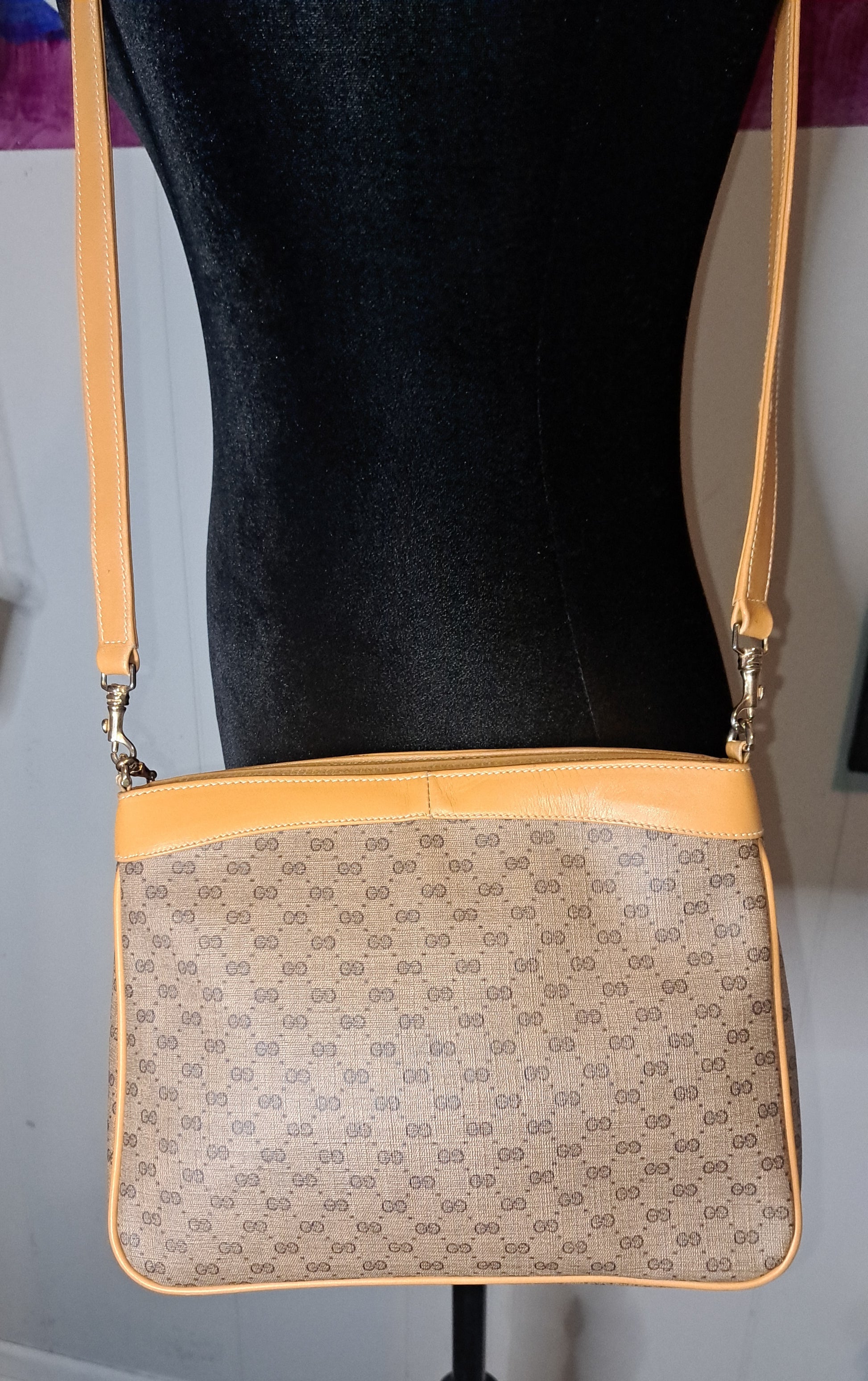 Authentic Vintage 80s Gucci Canvas Crossbody Purse