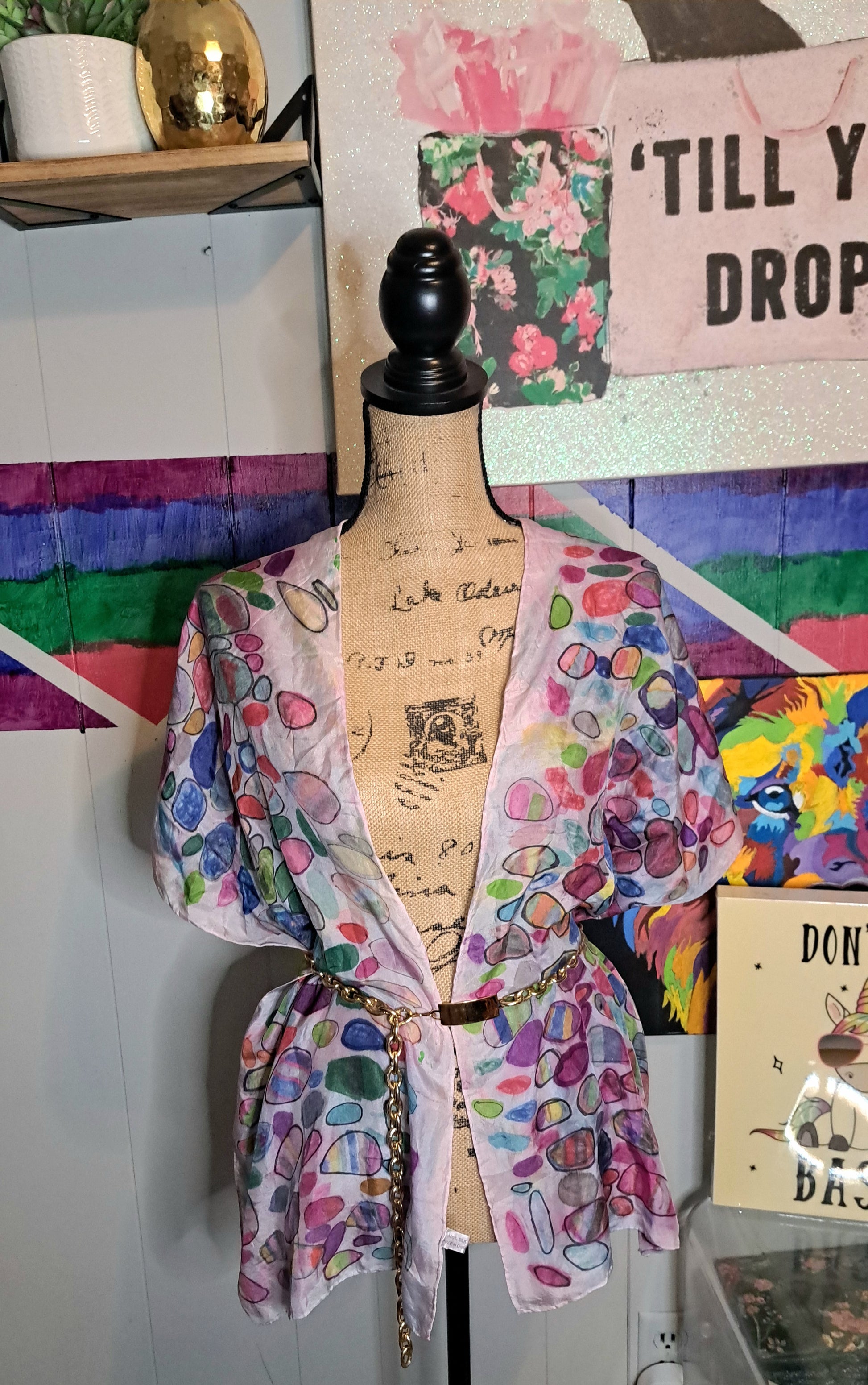 Multicolored Lavender/Polkadot 100% Silk Scarf 15x75in
