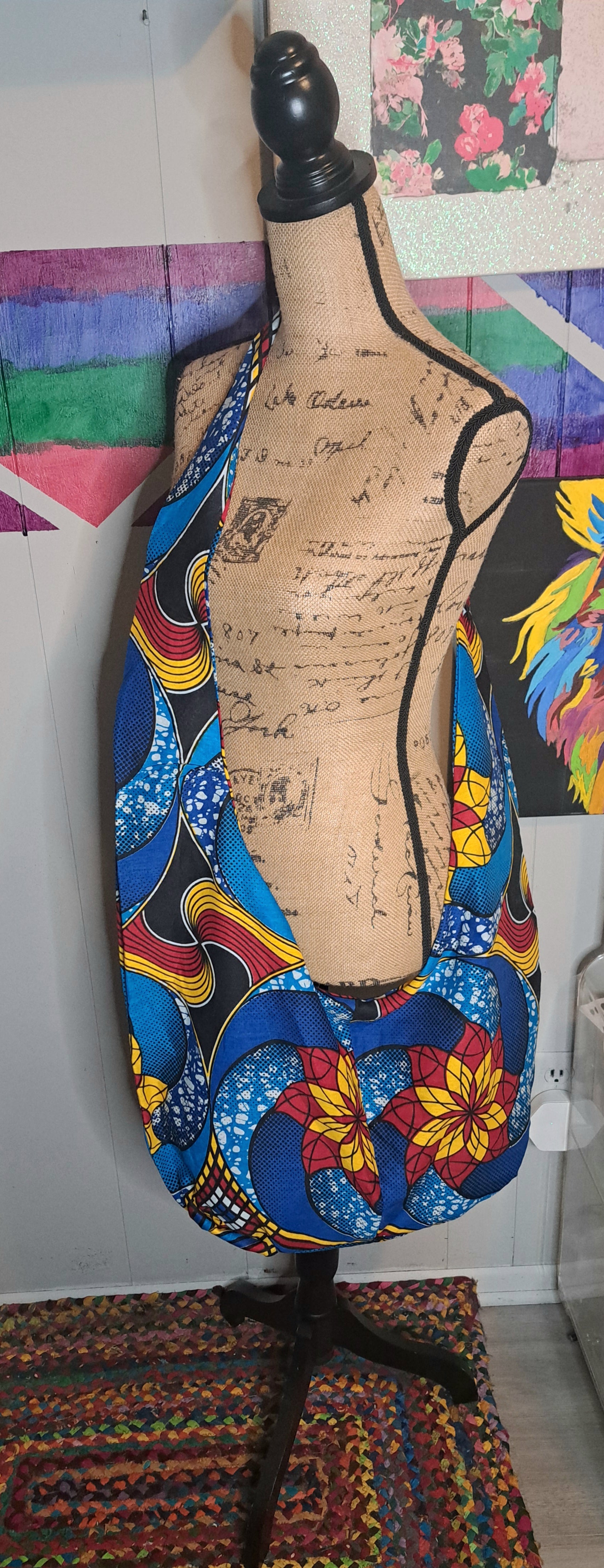 Nwot Handmade Oversized Blue/Multicolored Ankara Print Bag with Zipper Closure