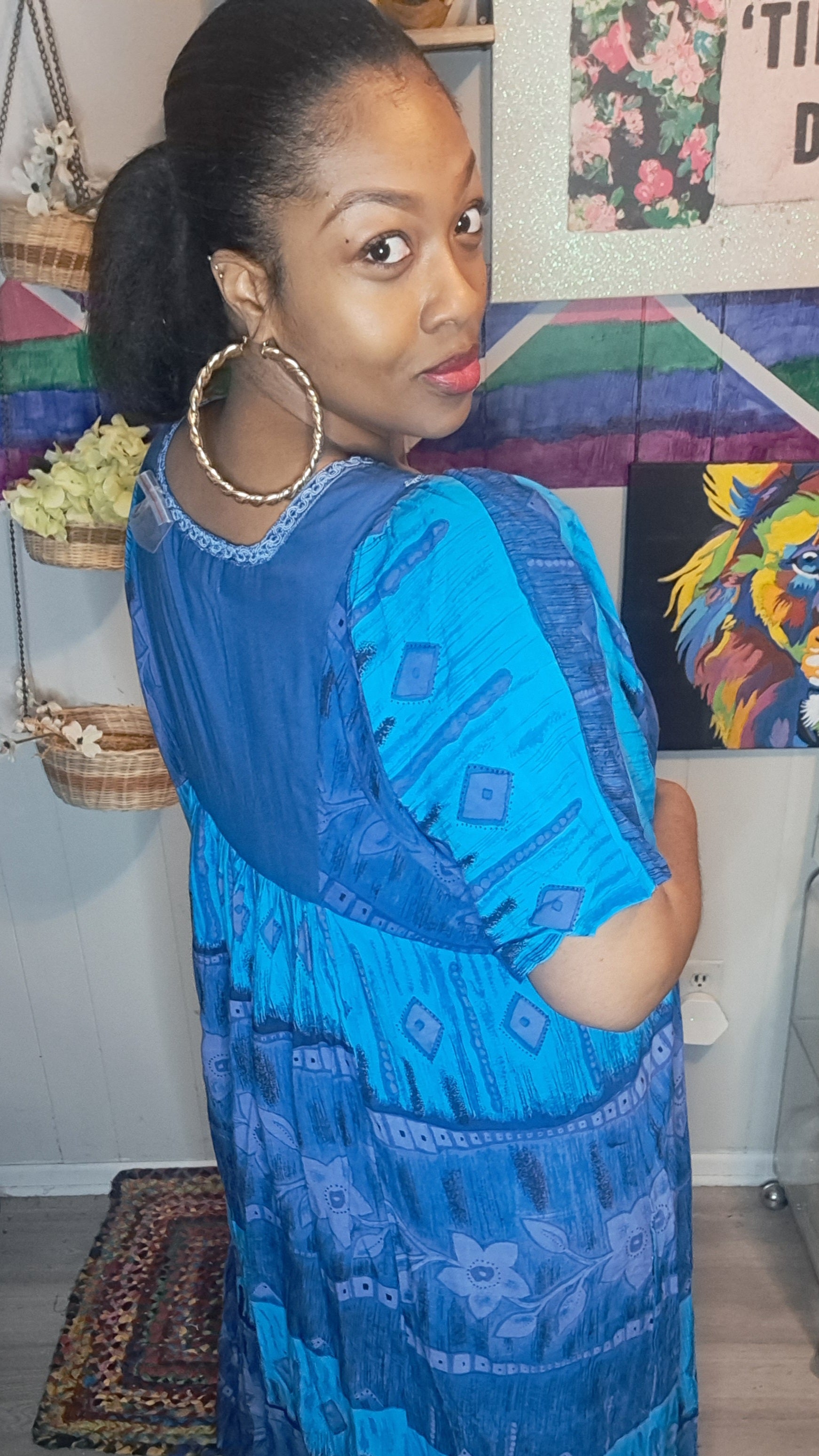 Nwt Vtg Roman's Blue Denim Embroidered Mumu Dress with Pockets SZ 14W/16W