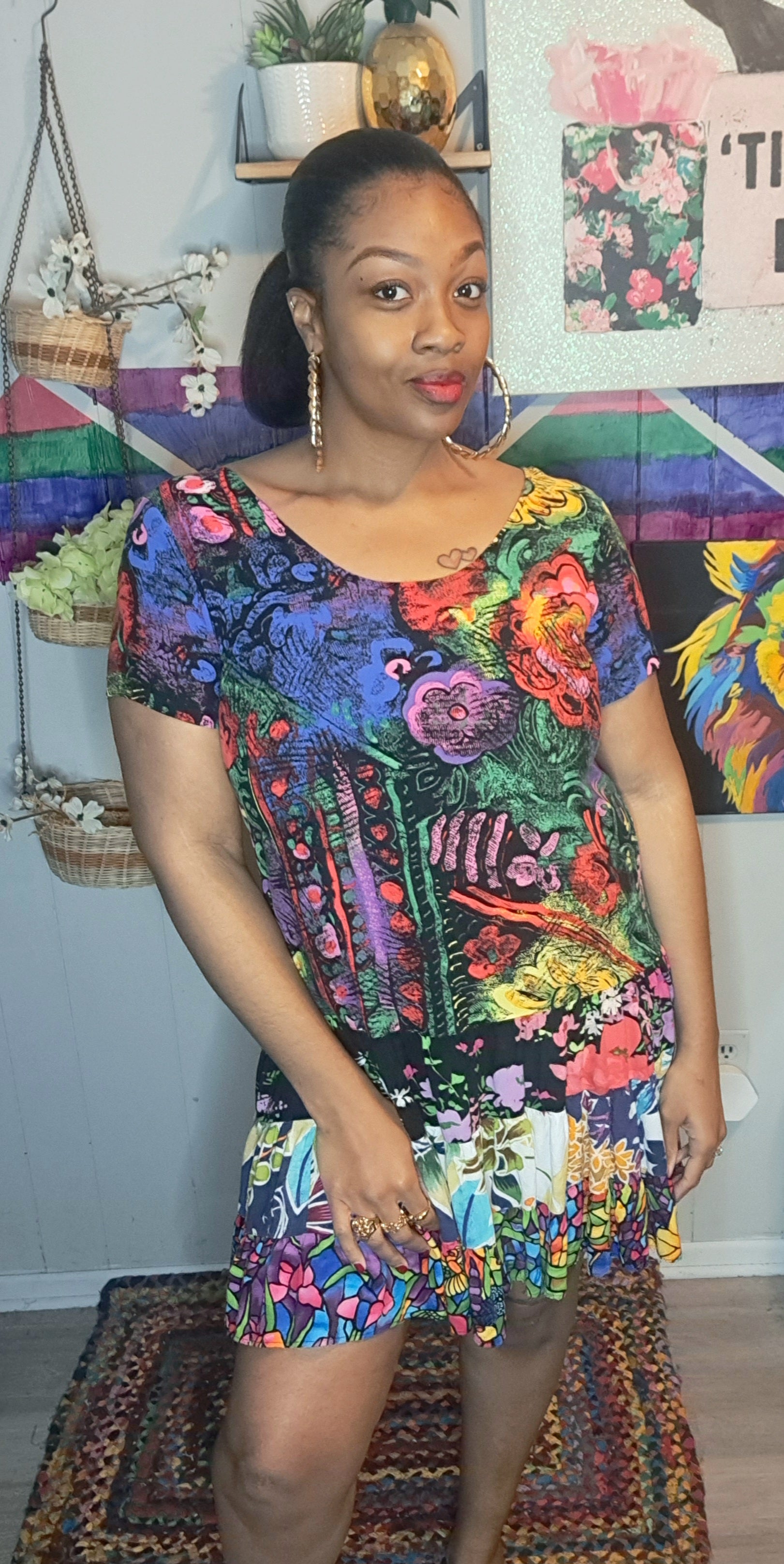 Vtg Jams World Multicolored Patchwork Print Dress SZ XL ptp 24in
