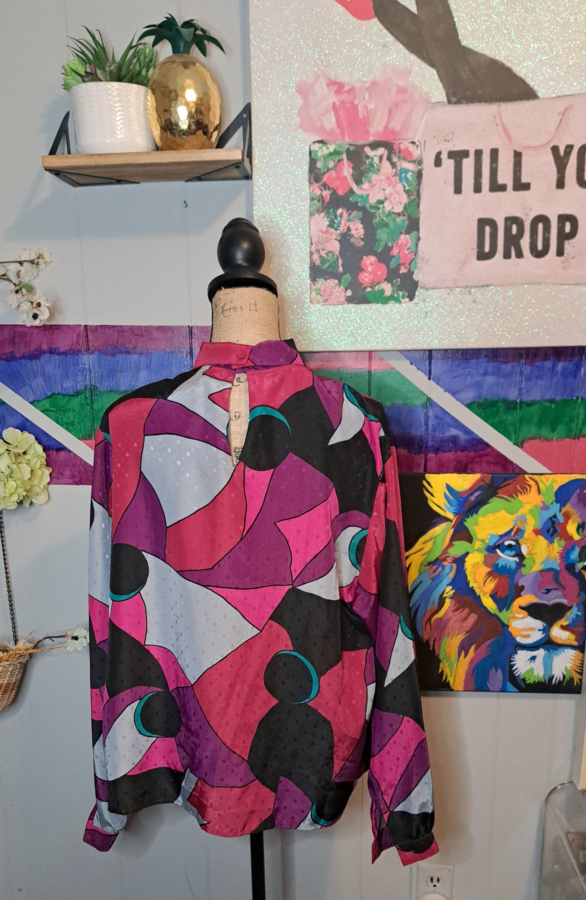 Vtg Ship N Shore Double Collar Multicolored Abstract Print Top SZ 16 (Ptp 24in)