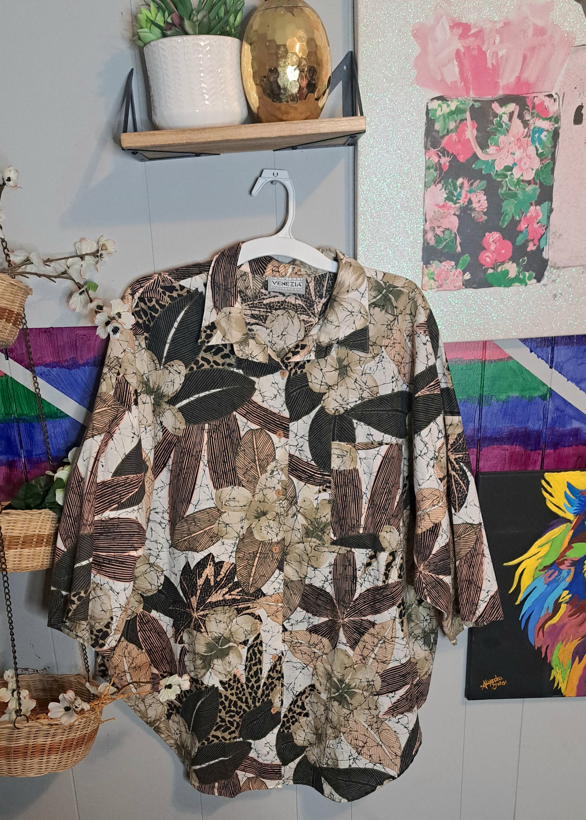 Vtg Venezia Animal/Leaf Print Dolman Sleeve Top Plus Size 1X-3X (Ptp 28in)